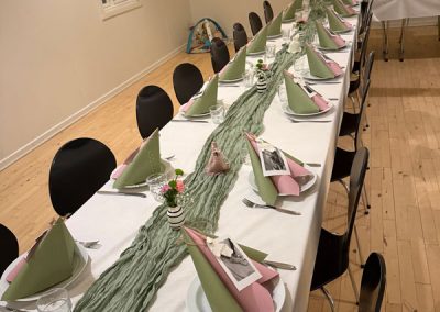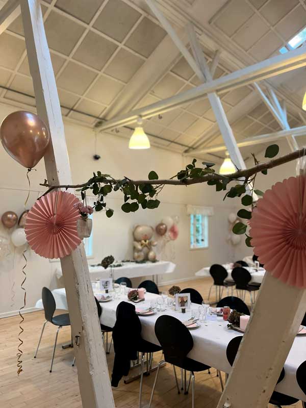 Vi har mange udlejninger, og får ofte stillet de samme spørgsmål til bordopstilling og bordpynt i forhold til, hvordan man kan udsmykke lokalerne med bordopstilling og pynt.